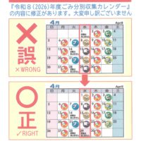 【重要】令和8年度ゴミ収集カレンダーの訂正について(大田原市金田地区)